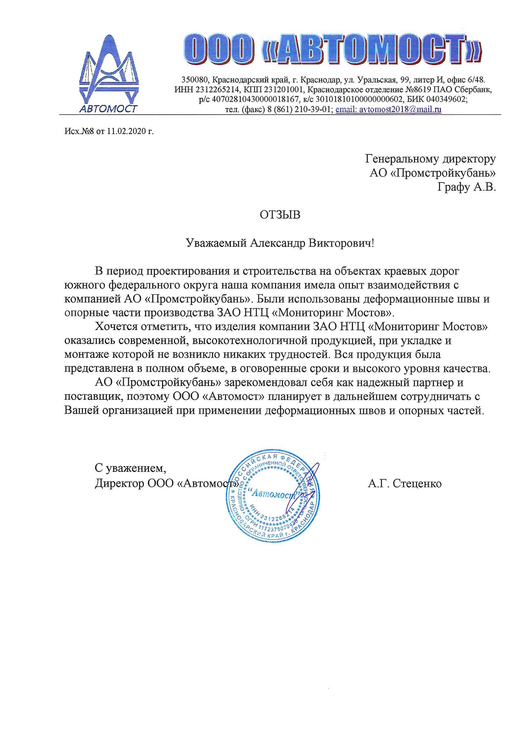 Отзыв компании ООО "Управление по строительству искусственных сооружений"