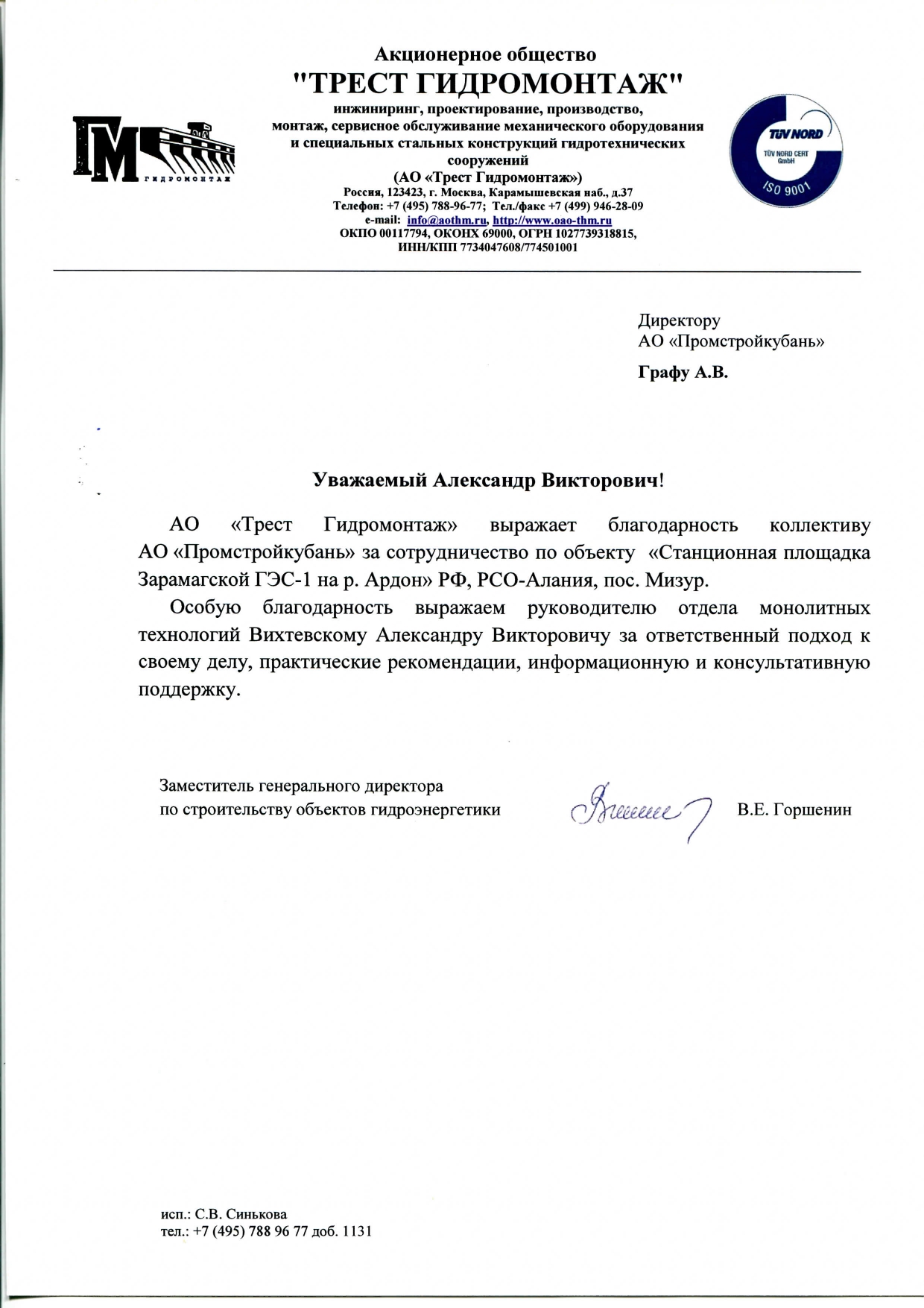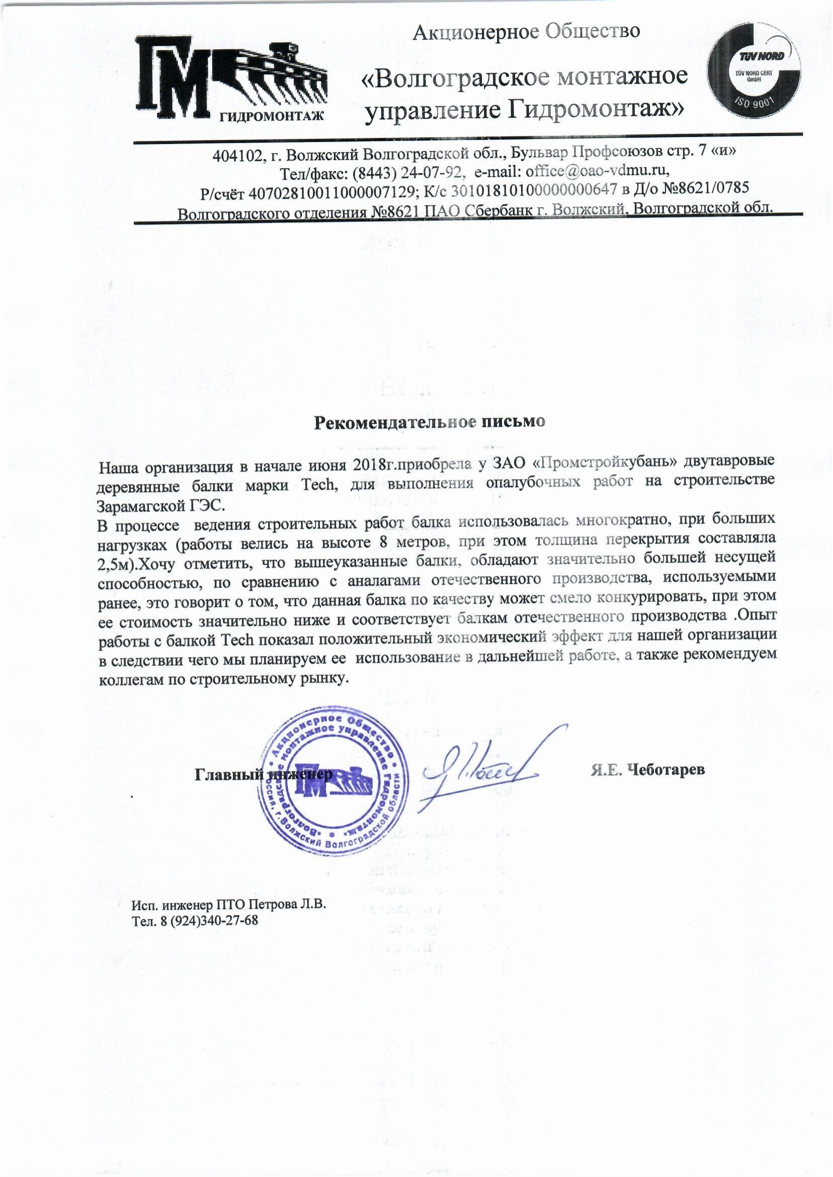 Отзыв компании ООО "Волгоградское монтажное управление Гидромонтаж"