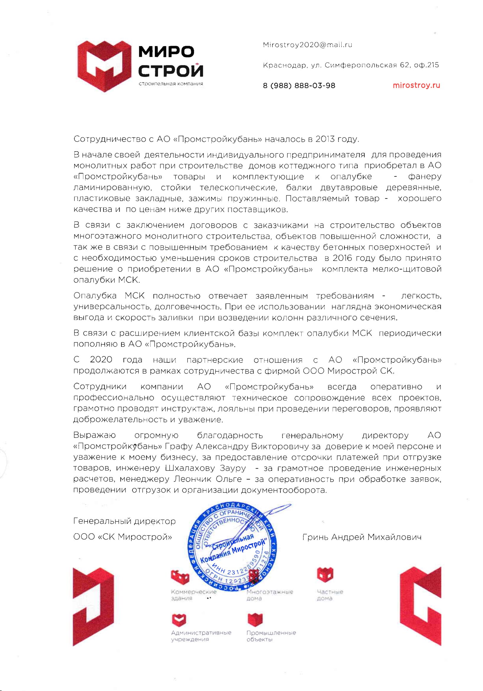 Отзыв компании ООО СК "МИРО СТРОЙ"