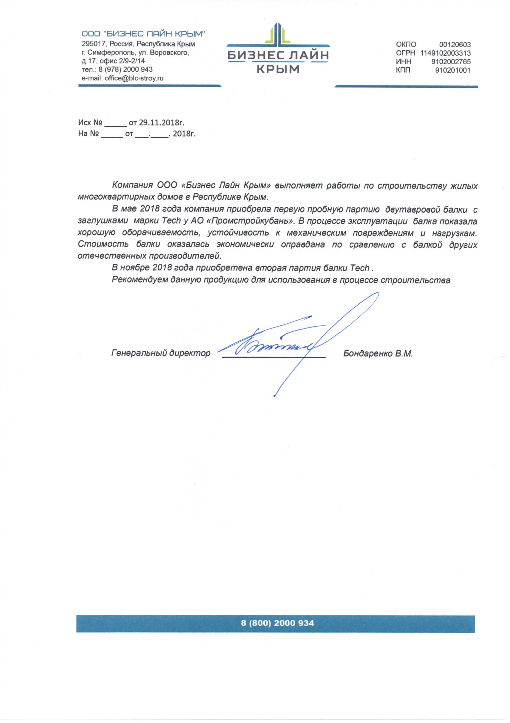 Отзыв компании ООО "Бизнес Лайн Крым"