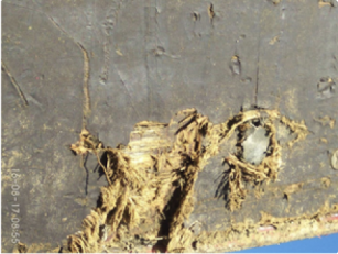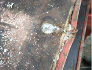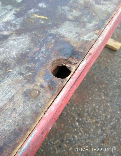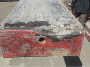 Сквозные отверстия диаметром до 20мм но более 8шт; отверстия диаметром более 20мм; рванные участки фанеры; расслоение торцов фанеры и поверхности диаметром более 10см (глубиной более 2мм); прочие повреждения и загрязнения, не позволяющие дальнейшую эксплуатацию Замена фанеры Таблица 1 дефектовой ведомости Фото 9-13