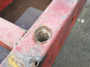 Сквозные отверстия в раме, повреждение заводского сварного шва, наличие постоянной сварки Брак (ремонту не подлежит) По оценочной стоимости Фото 24-26